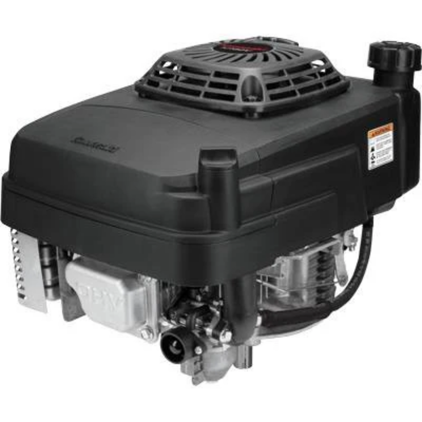 Overhead valve Flywheel magneto transistor ignition Recoil starter with automatic compression release Dual element air cleaner Low-tone muffler with guard Fuel shut-off valve Cast-iron cylinder liner